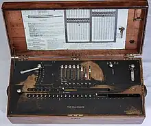 Cette calculatrice est la première faisant l'objet d'une industrialisation, permettant de multiplier directement un nombre par un chiffre, en utilisant une plaque contenant des tiges de longueur proportionnelle aux termes des colonnes de la table de Pythagore. Les calculateurs précédents décomposaient une multiplication en une suite d'additions[4]. Auparavant, Léon Bollée avait présenté à l'exposition universelle de 1889 une machine fondée sur les mêmes principes, permettant de faire une multiplication directe[5].