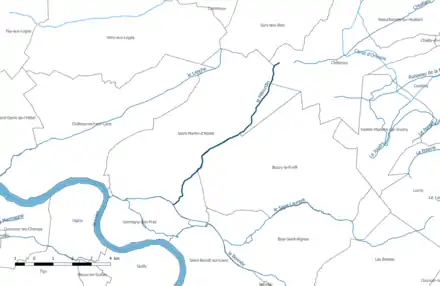 Son bassin versant correspond à la zone hydrographique « la Bonnée du Dureau (nc) à la Loire (nc) (k428) », au sein du bassin DCE plus large « La Loire, les cours d'eau côtiers vendéens et bretons ». Ce dernier s'étend sur 183 km2[1]. Il est constitué à 42.99 % de « territoires agricoles », 52.64 % de « forêts et milieux semi-naturels » et à 3.91 % de « territoires artificialisés »[1].
