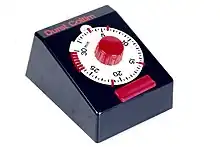 Horloge à usage mécanique pour mesurer le temps. Les minuteries manuelles sont généralement réglées en tournant un cadran sur l'intervalle de temps souhaité, cette action stocke l'énergie dans un ressort moteur pour faire fonctionner le mécanisme. Ils fonctionnent comme un réveil mécanique, l'énergie du ressort moteur fait tourner un balancier en avant et en arrière. Chaque tour de roue libère le train d'engrenages pour avancer d'une petite quantité fixe, ce qui fait que le cadran recule régulièrement jusqu'à ce qu'il atteigne zéro, à ce moment on éteint l'agrandisseur ou simplement un bras de levier frappe une cloche retentissant l'alarme. La minuterie d'agrandisseur mécanique a été inventée dans les années 1920 avec un stabilisateur de gir qui tourne contre la résistance de l'air[3].