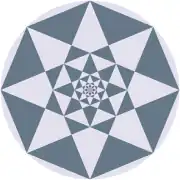 L’action d’une homothétie se répète indéfiniment, qui réduit une paire d’octogones réguliers en une autre paire semblable, qu’elle réduit encore et encore. Le centre de l’homothétie est le centre commun des octogones réguliers, convexes et étoilés. Le rapport d’homothétie est √2 – 1 en valeur absolue ; il peut être négatif à cause de la symétrie centrale de la figure.