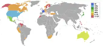 - L'Afrique du Sud, l'Allemagne, l'Australie, les États-Unis, le Mexique et l'Uruguay sont classés pour la 2e année consécutive.