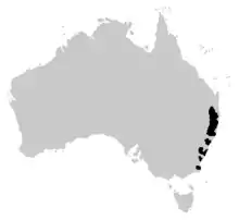Cette espèce est endémique du Sud-Est de l'Australie. Elle se rencontre entre 20 et 1 400 m d'altitude dans l'est de la Nouvelle-Galles du Sud et dans l'est du Victoria[1],[2].
