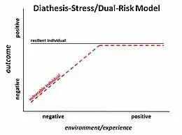 La diathèse, ou prédisposition, interagit avec la réponse au stress d'un individu. Le stress désigne un événement, ou une série d'événements, stressants de la vie qui affectent l'équilibre psychologique d'un individu et servant de catalyseur au développement d'un trouble[2]. Ainsi, le modèle diathèse–stress explore la manière dont des traits biologiques ou génétiques (diathèses) interagissent avec des influences environnementales (éléments de stress) pour produire des troubles mentaux, comme la dépression, les troubles anxieux, et la schizophrénie[3]. Le modèle diathèse–stress affirme que lorsque le stress excède une certaine limite, l'individu est hautement prédisposé à développer un trouble mental[4].