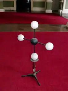 Le concept de la liaison chimique en tant que lien direct entre les atomes peut être modélisé en reliant des boules (atomes) avec des bâtons/tiges (liaisons). Cela a été extrêmement populaire et est encore largement utilisé aujourd'hui. Initialement, les atomes étaient constitués de boules en bois sphériques avec des trous spécialement percés pour les tiges. Ainsi, le carbone peut être représenté comme une sphère avec quatre trous aux angles tétraédriques cos −1 (− 1/3) ≈ 109,47°.