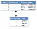 Dans deux tables A et B de relation 1:N, un uplet de la table A peut se rapporter à plusieurs uplets de la table B, et un uplet de la table B seulement à un uplet de la table A.