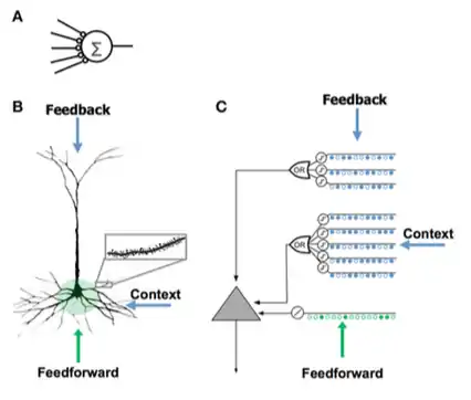 Tous les modèles déterministes ci-dessus sont des modèles de neurone ponctuel, c'est-à-dire qu'ils ne prennent pas en compte la structure spatiale d'un neurone. Cependant, la dendrite contribue à transformer l'entrée en sortie[9],[10]. Les modèles de neurones ponctuels sont une description valide dans trois cas. (i) Si le courant d'entrée est directement injecté dans le soma. (ii) Si l'entrée synaptique arrive principalement au niveau ou à proximité du soma (la proximité est définie par une échelle de longueur présentée ci-dessous. (iii) Si la synapse arrive n'importe où sur la dendrite, mais la dendrite est complètement linéaire. Dans le dernier cas, le câble agit comme un filtre linéaire ; ces propriétés de filtre linéaire peuvent être incluses dans la formulation de modèles d'intégration-et-tir généralisés tels que le modèle de réponse d'impulsion.