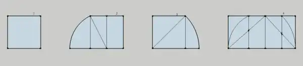 - On obtient ainsi un ensemble de quatre rectangles ainsi qu’un angle passant au milieu du carré initial (4).