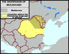 Selon les définitions ethnographiques (qui se réfèrent au droit du sang) prises en compte par les recensements roumains[14], moldaves[15] et ukrainiens[16] les Moldaves sont la partie de la population roumanophone[17] vivant ou étant originaire de la région historique de Moldavie, habitant principalement en Roumanie (dans la région roumaine de Moldavie), en république de Moldavie (où ils constituent le principal groupe linguistique), ainsi qu'en Ukraine et en Russie (en tant que minorités).