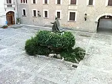 À l'extérieur, la fontaine Font Cuberta alimente le site d'une eau réputée pour sa qualité. Un terrain de foot et une piscine sont également disposés, ainsi qu'un petit jardin botanique, ouvert aux visiteurs.