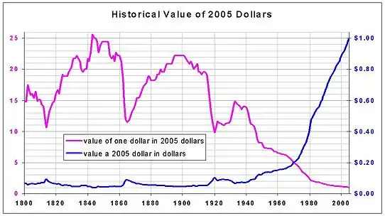 Voici par exemple, un graphique représentant la valeur de dollars constants déterminé pour l'année 2005.