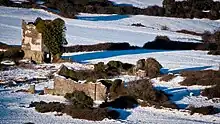 Lors de la construction, les pierres du cimetière préhistorique situé au sommet ont été utilisées, notamment un mégalithe qui a servi comme linteau de la cheminée[18]. Peu après la fin de la construction, une tempête a arraché le toit en ardoise, ce que les habitants de la région ont attribué à une punition du Diable pour avoir profané l'ancien cairn[19]. Conolly a fait remplacer le toit par une arche en pierre, à la façon d'un pont[16], qui est restée intacte jusqu'à présent, malgré l'abandon de la bâtisse pendant plus de deux siècles[19],[20].