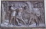 Le monument comporte, entre les figures, quatre bas-reliefs représentant des scènes historiques.