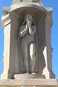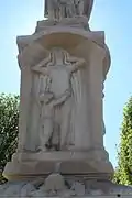 Le monument est fait de calcaire. Sur le piédestal, à quatre faces, figurent des femmes veuves en pleur avec leur enfant orphelin. Au sommet, sur un socle, une Victoire soutient un homme mourant[3],[4].