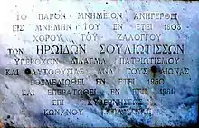 - (en) Cet article est partiellement ou en totalité issu de l’article de Wikipédia en anglais intitulé « Monument of Zalongo » (voir la liste des auteurs).
