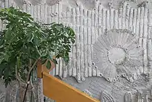 Bibliothèque François Villon à Paris, sculpture de Morog décorant l'escalier principal (détail).