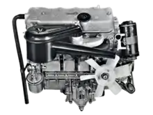 Culasse en alliage léger à chambres de turbulence avec chemises amovibles humides, arbre à cames en tête commandant directement les soupapes disposées en ligne, vilebrequin à 5 paliers et ventilateur débrayable automatique.