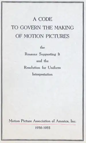Dans un premier temps, ces recommandations ne sont guère suivies, jusqu'à ce que se renforce le contrôle financier sur les productions et que par ailleurs, à l'appel du pape Pie XI, les évêques américains fondent une Légion de la Décence qui va mener une virulente campagne en faveur de l'application stricte du Code[6]. Celle-ci sera effective à compter du [7], et désormais, plus que jamais, estime l'historien du cinéma Georges Sadoul, l'industrie hollywoodienne va se tourner vers le répertoire théâtral ou romanesque. L'application du Code, si elle ne vise guère par exemple le film d'horreur, a des conséquences entre autres sur le film de gangsters, qui se fait parfois moralisateur avant de s'effacer, et surtout sur les scènes d'amour[6], alors que les films de l'ère Pré-Code avaient pu aller assez loin dans la nudité ou ruser déjà pour éviter la censure.