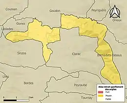 Le retrait-gonflement des sols argileux est susceptible d'engendrer des dommages importants aux bâtiments en cas d’alternance de périodes de sécheresse et de pluie. La totalité de la commune est en aléa moyen ou fort (44,5 % au niveau départemental et 48,5 % au niveau national). Sur les 99 bâtiments dénombrés sur la commune en 2019, 99 sont en aléa moyen ou fort, soit 100 %, à comparer aux 75 % au niveau départemental et 54 % au niveau national. Une cartographie de l'exposition du territoire national au retrait gonflement des sols argileux est disponible sur le site du BRGM[24],[Carte 3].