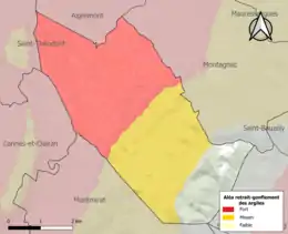 Le retrait-gonflement des sols argileux est susceptible d'engendrer des dommages importants aux bâtiments en cas d’alternance de périodes de sécheresse et de pluie. 83,8 % de la superficie communale est en aléa moyen ou fort (67,5 % au niveau départemental et 48,5 % au niveau national). Sur les 291 bâtiments dénombrés sur la commune en 2019, 291 sont en aléa moyen ou fort, soit 100 %, à comparer aux 90 % au niveau départemental et 54 % au niveau national. Une cartographie de l'exposition du territoire national au retrait gonflement des sols argileux est disponible sur le site du BRGM[15],[Carte 2].