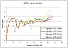 L'avantage des mousses métalliques, qu'elles soient régulières ou stochastiques, est que la réaction est constante quel que soit le sens de l'effort. En effet, les mousses sont homogènes. Elles présentent un plateau de contrainte constant suivant la déformation. Cette déformation peut aller jusqu'à 80 % d'allongement.