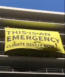 En juin 2019, des militants du mouvement Sunrise dorment sur les marches des bureaux du DNC à Washington, pour protester contre le manque d'attention sur la crise climatique lors de ces débats et pour appeler à un débat centré sur ce sujet[22]. En août, le comité des résolutions du DNC vote contre l'organisation d'un tel débat (17 contre, 8 pour)[23]. Au cours de la session, une résolution est cependant adoptée pour permettre à plusieurs candidats de se présenter ensemble sur scène lors d'une assemblée publique ou d'un forum pouvant porter sur ce sujet. Cependant, cette résolution est rejetée deux jours plus tard par les membres du DNC (222 contre, 137 pour)[24].