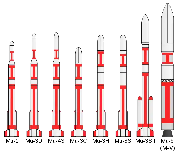 L'Institute of Space and Astronautical Science (ISAS), agence spatiale japonaise dépendant de l’Université de Tokyo développe dans la deuxième moitié des années 1960 de puissantes fusées-sondes à propergol solide de la série Lambda. Ces fusées sont lancées depuis le site d'Uchinoura dans la préfecture de Kagoshima (dans l'île de Kyūshū, la plus méridionale des grandes îles du Japon. C'est une de ces fusées dotée d'un étage supplémentaire (version Lambda 4S) qui parvient à placer en orbite le premier satellite artificiel japonais baptisé Ōsumi. Mais sa capacité trop réduite (environ 40 kg en orbite basse) et ses caractéristiques ne permettent pas d'en faire un véritable lanceur. Dès 1966 l'agence spatiale commence à développer une nouvelle famille de fusées plus puissantes, la série Mu qui doit lancer les futurs satellites[1]. Contrairement aux autres agences spatiales dans le monde qui optent pour une propulsion à ergols liquides plus performante, l'ISAS décide de continuer à utiliser des moteurs à propergol solide. un premier vol suborbital, Mu-1est réalisé le [2].