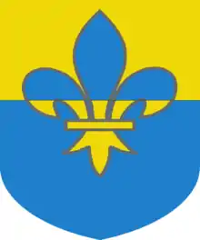 Les armes des Muazzo sont coupés d'or et d'azur avec une grande fleur de lys de l'un en l'autre.