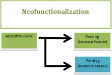 La néofonctionnalisation est une des issues possibles de la divergence fonctionnelle, et a lieu lorsqu'une copie d'un gène, ou paralogue, prend en charge une fonction totalement nouvelle à la suite d'une duplication génique. La néofonctionnalisation est un processus de mutation adaptatif, ce qui signifie qu'une des copies du gène ancestral doit muter afin de développer une fonction qui n'existait pas chez ce gène ancestral[1],[2],[3]. En d'autres mots, l'un des duplicons conserve sa fonction originale, alors que l'autre accumule des modifications moléculaires qui font qu'avec le temps, ce dernier peut réaliser une fonction différente[4]. On pense que ce processus n'est pas affecté par la pression de sélection car une des copies du gène peut muter sans affecter de façon préjudiciable la fitness d'un organisme car la fonction ancestrale est conservée dans l'autre copie[5],[6],[7],[8].