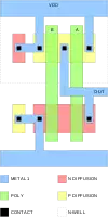 ![]() Disposition physique d'une fonction NON-ET CMOS |