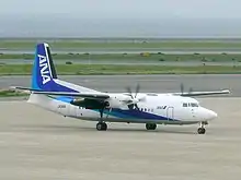 Fokker 50 de la compagnie Air Central arrivant à l'aéroport international de Chubu (Japon).