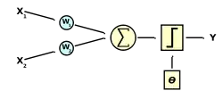 qui justifie le nom de seuil donné à la valeur . En effet, si la somme dépasse la sortie du neurone est 1, alors qu'elle vaut 0 dans le cas contraire : est donc le seuil d'activation du neurone, si on considère que la sortie 0 correspond à un neurone « éteint ».