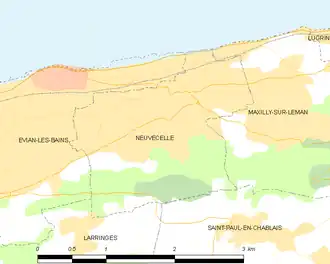 La commune de Neuvecelle se situe sur les bords du Léman, au nord-est de Genève. Les communes limitrophes de Neuvecelle sont Évian-les-Bains, Larringes, Saint-Paul-en-Chablais et Maxilly-sur-Léman.
