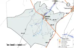Nibelle est limitrophe de huit autres communes, dont Combreux au sud par un simple quadripoint.