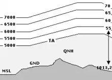 En altimétrie, une altitude en aviation est calculée à partir d'une différence de pression entre une pression avec laquelle se calibre l'altimètre et la pression statique à l'extérieur de l'avion. Pour mesurer une altitude par rapport à un aérodrome, on entre comme pression de référence la pression au sol sur l'aérodrome, appelée QFE. Pour avoir une altitude par rapport au niveau de la mer, la calibration se fait avec la pression ramenée au niveau de la mer, le QNH.