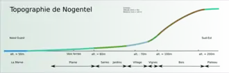 Le terroir de Nogentel se compose d'une partie en vallée, d'une partie boisée pentue à la base de laquelle se trouvent des vignes en appellation champagne ; au-dessus se situe le plateau de la Brie.