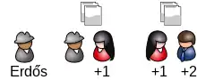 - le nombre d'Erdős d'une personne M est le plus petit nombre d'Erdős de toutes les personnes avec qui M a cosigné un article, plus un,
