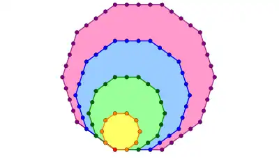 | 12 | nombre dodécagonal | P12,n | 1 | 12 | 33 | 64 | 105 | 156 | 217 | 288 | 369 | 460 | ||||||