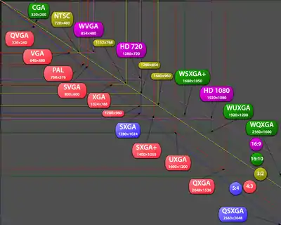 QVGA | VGA | SVGA | XGA | XGA+ | SXGA | SXGA+ | UXGA | QXGA | |||||
