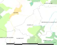 L'occupation des sols de la commune, telle qu'elle ressort de la base de données européenne d’occupation biophysique des sols Corine Land Cover (CLC), est marquée par l'importance des territoires agricoles (91,2 % en 2018), une proportion sensiblement équivalente à celle de 1990 (91,9 %). La répartition détaillée en 2018 est la suivante : prairies (50,9 %), terres arables (40,3 %), forêts (8,9 %)[17]. L'évolution de l’occupation des sols de la commune et de ses infrastructures peut être observée sur les différentes représentations cartographiques du territoire : la carte de Cassini (XVIIIe siècle), la carte d'état-major (1820-1866) et les cartes ou photos aériennes de l'IGN pour la période actuelle (1950 à aujourd'hui)[Carte 3].