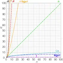 Voici une liste de catégories de fonctions couramment utilisées en analyse. La variable (notée ici n) tend vers +∞ et c est une constante réelle arbitraire. Lorsque c est une constante supérieure à 1, les fonctions apparaissent dans cette liste par ordre croissant de grandeur.