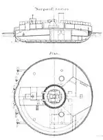 | Blindage | ceinture en acier 230 mm, socle de la cheminée 175 mm, barbette 229 mm |