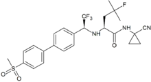 L'Odanacatib (DCI : MK-0822) est un traitement expérimental pour lutter contre l'ostéoporose et les métastases osseuses [1]. C'est un inhibiteur réversible de la cathepsine K[2], enzyme impliquée dans la résorption osseuse. Cette molécule est en cours de mise au point par Merck & Co. à Montréal. Les essais cliniques de phase III pour ce composé ont été arrêtés prématurément après un examen qui a démontré qu'il était très efficace et avait un bon profil d'innocuité. Merck a déclaré qu'une demande d'approbation réglementaire serait présentée en 2015[3]. Selon Cowen and Co, les prévisions de chiffre d'affaires sont estimées à un milliard de dollars par an à partir de 2020[4].