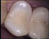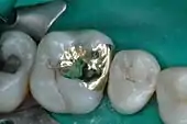 Il s'agit d'un composite très fortement chargé qui est durci sous pression et à forte température. Il en résulte une pièce très solide et esthétique. La réalisation d'un inlay/onlay en composite n'est pas très difficile. L'inlay en composite se colle de préférence[5]. C'est peut-être à l'heure actuelle la technique de soins conservateurs qui présente les meilleures propriétés.
