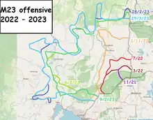 - (en) Cet article est partiellement ou en totalité issu de l’article de Wikipédia en anglais intitulé « M23 offensive (2022) » (voir la liste des auteurs).