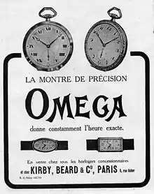 En 1894, l'entreprise lance le calibre Omega 19 lignes[10], qui donnera son nom à l'entreprise. Le nom est déposé dès le . Ce produit est une réussite totale aussi bien technique que commerciale : vingt ans plus tard, en 1914, il représente encore le tiers de la production d'Omega[11]. En 1896 : Omega remporte sa première récompense. L'entreprise occupe près de 800 personnes et fabrique 100 000 montres Omega par année. On la considère déjà comme la « plus importante fabrique d'horlogerie de Suisse ». Les premières contrefaçons apparaissent[12]. Après la mort des deux fondateurs, l'entreprise est transformée en société anonyme au capital de 250 000 francs ().