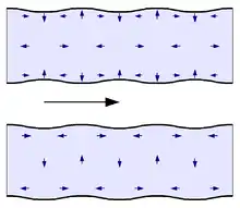 La méthode la plus simple pour décrire les ondes de Lamb dans une plaque infinie, isotrope consiste à utiliser l'écriture sous forme de potentiels[2]. On considère une plaque formée d'un matériau isotrope, s'étendant de à selon l'axe , infinie selon les directions et . Le matériau de la plaque est caractérisé (entre autres choix possibles de paramètres mécaniques) par sa masse volumique , et ses modules et (compression et cisaillement respectivement). On s'intéresse à une onde se propageant selon et sans diffraction selon , tout le problème est donc ramené dans le plan x,z.