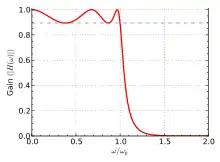 L'ondulation résiduelle (ou "ripple") dans le contexte du domaine fréquentiel fait référence à la variation périodique de la perte d'insertion en fonction de la fréquence (courbe gain-bande passante). Tous les filtres ne présentent pas ces ondulations, certains présentent des pertes d'insertions avec des fronts de coupures de type monotones comme c'est le cas pour le filtre de Butterworth. Les filtres les plus répandus qui présentent ce type d'ondulations résiduelles sont le filtre de Chebyshev, le filtre de Chebyshev inverse et le filtre elliptique[3]. Les autres exemples de réseaux de transmission présentant des ondulations sont les réseaux d'adaptation d'impédance conçus à l'aide de polynômes de Chebyshev. Les ondulations résiduelles de ces réseaux, contrairement à d'autres filtres, ne pourront jamais atteindre 0 dB si le filtre est calibré pour une transmission sur la bande passante dans son ensemble[4].