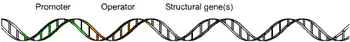 • Le promoteur : c'est une séquence de nucléotides qui permet la transcription du gène en ARNm. Il est reconnu par l'ARN polymérase qui initie la transcription. Lors de la synthèse de l'ARN, le promoteur indique quel gène doit s'exprimer et donc quelles protéines la cellule doit produire. Dans un opéron il est commun à tous les gènes.