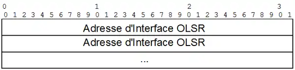 - « Link Code » : Code identifiant le type de lien (pas d'information, symétrique, asymétrique, etc.) entre l'expéditeur et les interfaces listées (« Neighbor Interface Address »)