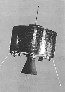 Le premier satellite placé en orbite géostationnaire fut Syncom 3, lancé par une fusée Delta D en 1964[14]. Grâce à une bande passante élargie, ce satellite fut à même de retransmettre en Amérique les Jeux olympiques d'été de Tokyo (Japon)[10].